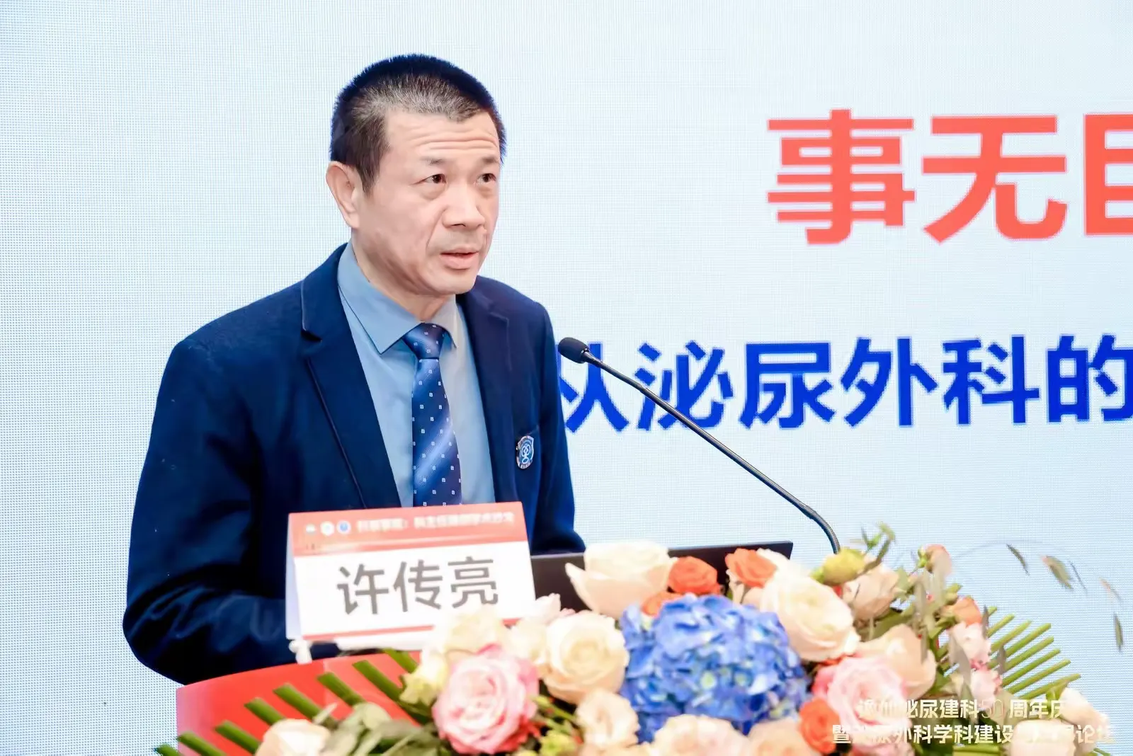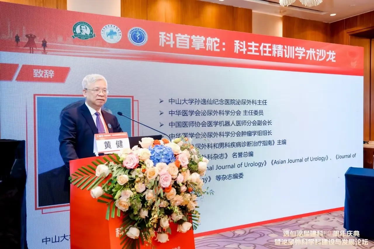 中华医学会泌尿外科学分会主任委员、中山大学孙逸仙纪念医院泌尿外科主任黄健教授率先上台致辞。他表示,当前各医院泌尿外科在实践经验与发展形态上各有特色。分享各科室建设与发展过程中的成功经验与宝贵教训,能让大家相互学习、彼此启发,有力促进中国泌尿外科事业的繁荣与进步。他满怀信心地强调,集思广益的合作精神是达成创新与突破的核心要素。面对当今社会对高质量医疗服务需求的持续攀升,泌尿外科领域的全体工作者更应齐心协力,为提升行业整体水平而不懈奋进,积极推动泌尿外科领域不断发展,以更好地服务广大患者,满足社会医疗需求。